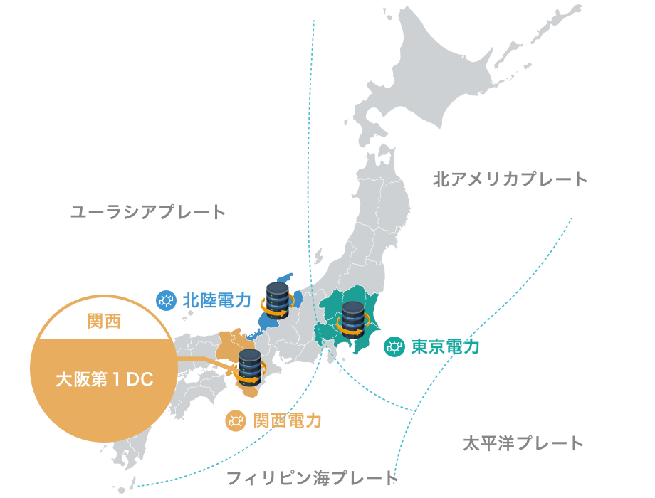 大阪の中心部に位置し、主要な駅から10分圏内のアクセスしやすい都市型データセンターです。